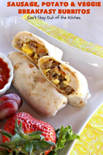 Don’t these Sausage, Potato and Veggie Breakfast Burritos look scrumptious?