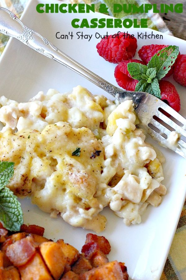 Chicken and Dumpling Casserole is a mouthwatering recipe reminiscent of Homemade Chicken and Dumplings.