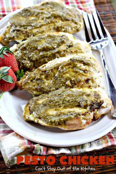 Pesto Chicken has amazing taste. It’s hard to believe only three ingredients provides such spectacular flavor!