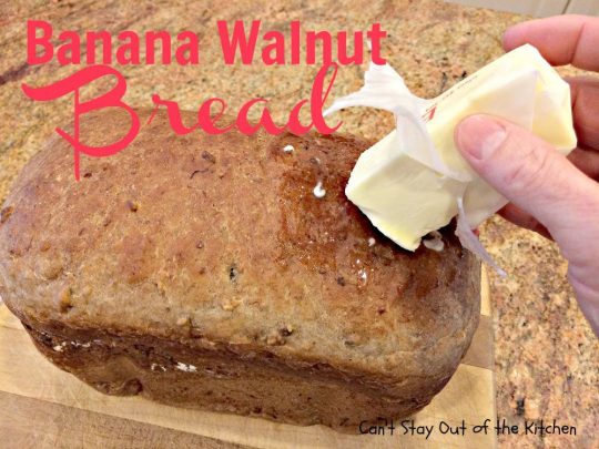 Banana Walnut Bread is great slathered with butter alone, but I also enjoy my breads spread with honey or jam.