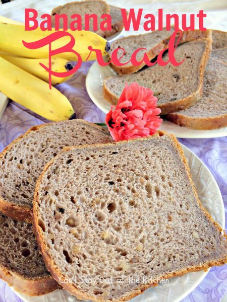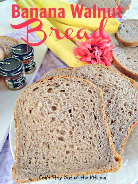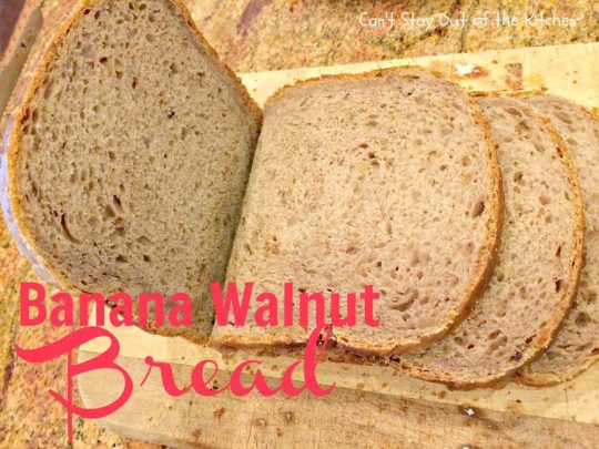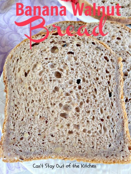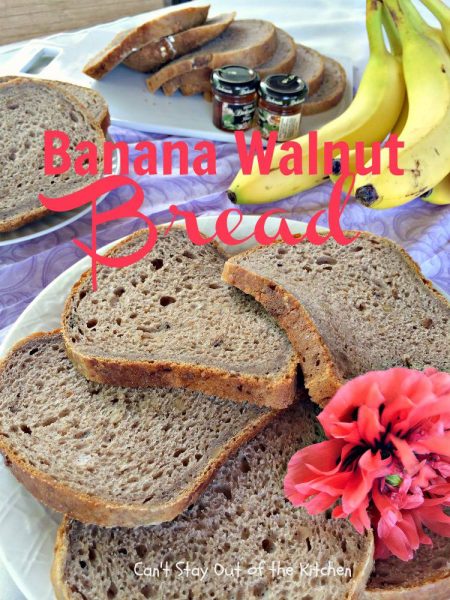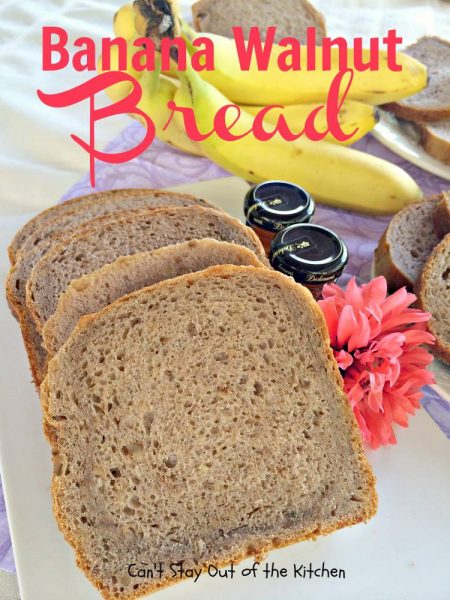 Banana Walnut Bread is a fabulous homemade bread for the breadmaker. Instead of the normal sweet banana bread recipes, this one is a yeast bread. It’s made with walnuts and it is light and fluffy the way yeast breads are supposed to turn out. I loved the way this home-baked bread tasted. It was so delicious. Plus, since it was made in the breadmaker, I only had five minutes of work tossing the ingredients into the bread canister and the breadmaker did the work. Yay!