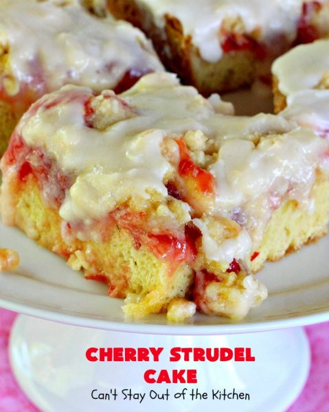 Cherry Strudel Cake is ooey, gooey and delicious!