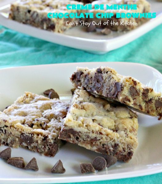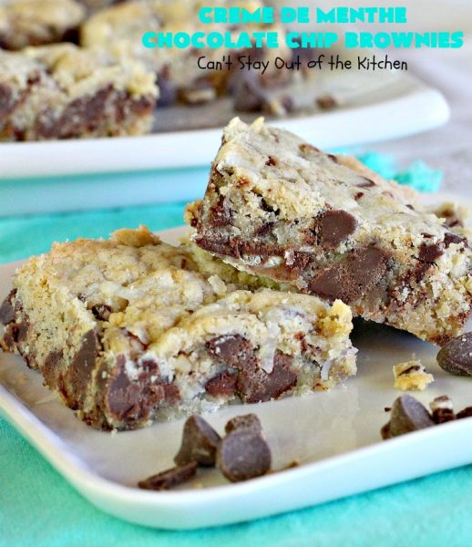 However, if you enjoy mint-flavored goodies, then put Creme de Menthe Chocolate Chip Brownies on your holiday baking list. They’re also terrific for your next tailgating party or backyard barbecue. Be prepared for a sugar high, though, as these goodies have a lot of sugar and chocolate!