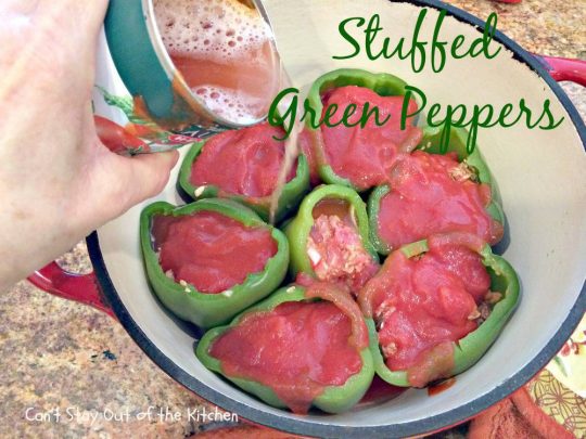 This old-fashioned recipe is easy and delicious. The peppers come out of the oven this way. But there is plenty of extra sauce at the bottom of the pan to ladle over top if you prefer a lot of tomato sauce on top.