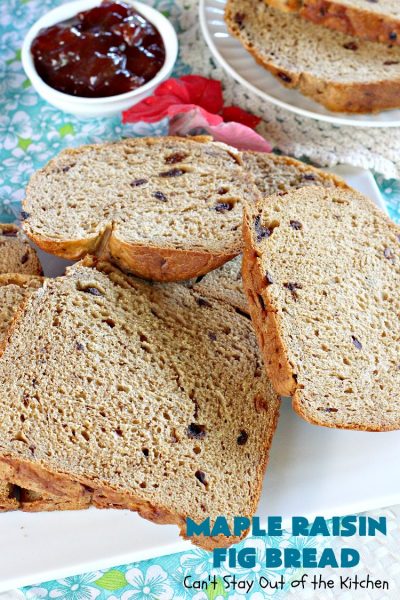 Maple Raisin Fig Bread | Can't Stay Out of the Kitchen | This delicious home-baked #bread is absolutely wonderful. It's made with #raisins, dried #figs & #maple flavoring. It's incredibly easy since it's made in the #Breadmaker! Terrific for #breakfast or as a dinner bread. #HomemadeBread #MapleRaisinFigBread #BreadmakerBread