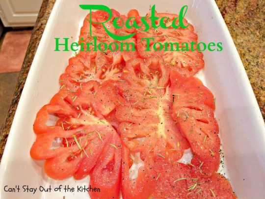 Roasted Heirloom Tomatoes – IMG_2304.jpgMay 20, 2014Teresa AmbraSkinny Roasted Heirloom Tomatoes | Can’t Stay Out of the Kitchen – lovely #sidedish is quick, easy, economical and low calorie. #glutenfree #vegan #tomatoes