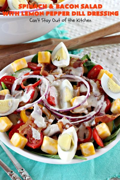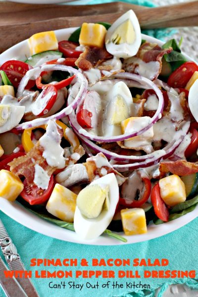 Doesn’t Spinach and Bacon Salad with Lemon Pepper Dill Dressing look wonderful?