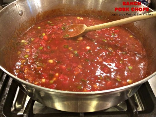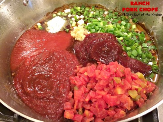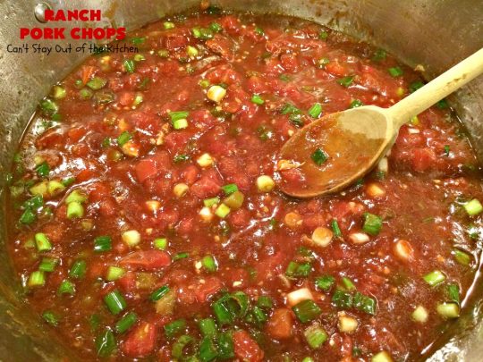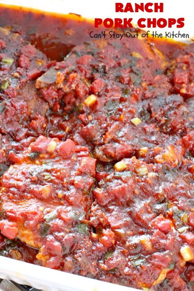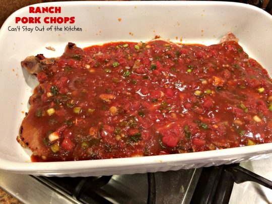 Ranch Pork Chops | These fantastic #PorkChops are made with #ChiliSauce, #RanchDressingMix, #tomatoes with green #chilies, green onions & garlic. They are absolutely mouthwatering & a terrific #pork entree for family or company dinners. #RanchPorkChops