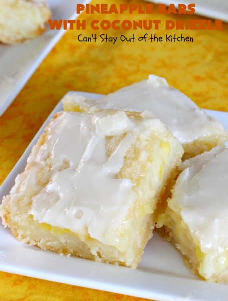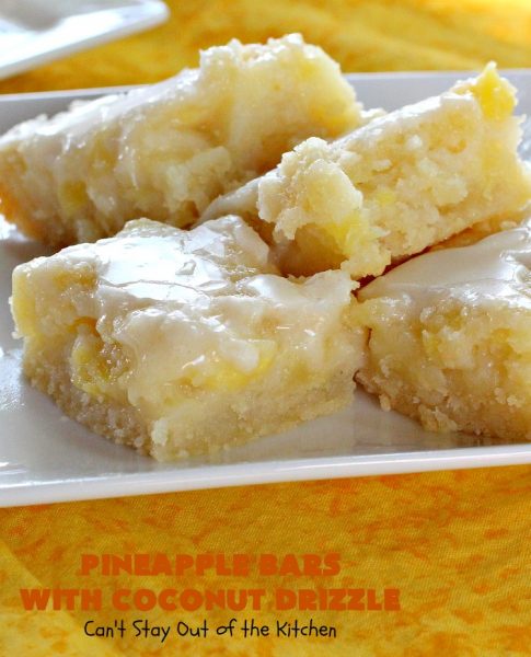 Pineapple Bars with Coconut Drizzle | Can’t Stay Out Of The Kitchen | terry1954