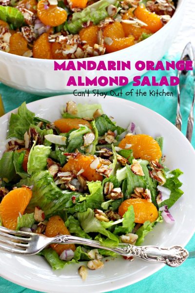 Mandarin Orange Almond Salad is a tasty salad for company or anytime you’re in the mood for salad.