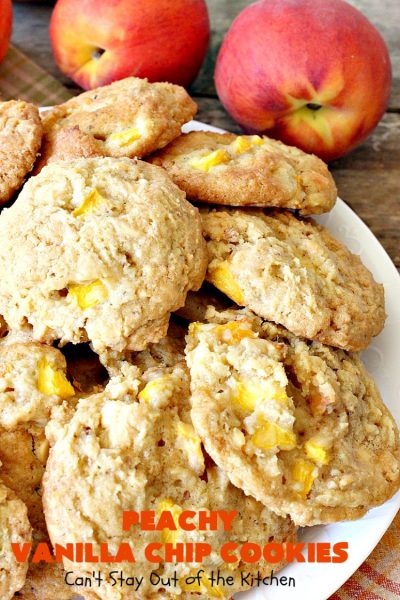 Give Peachy Vanilla Chip Cookies a try while peaches are still in season. You won’t be disappointed.