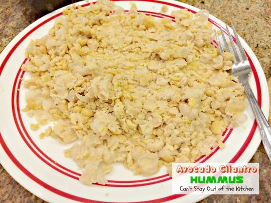 - Drain and rinse garbanzo beans; mash with a fork on a plate.