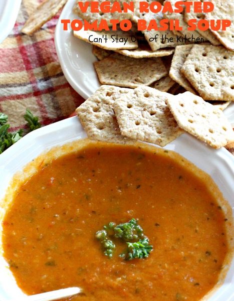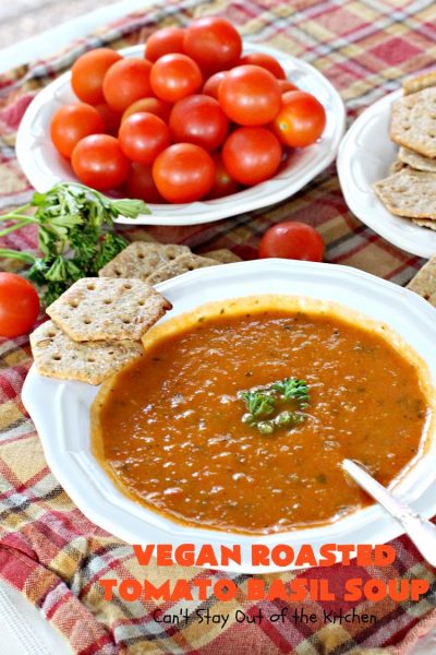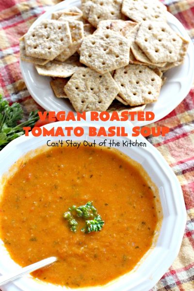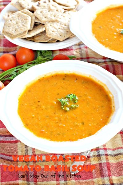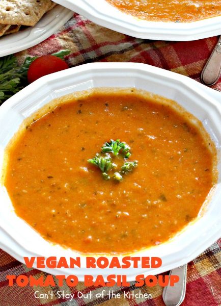 Vegan Roasted Tomato Basil Vegetable Soup – Can't Stay Out Of The Kitchen
