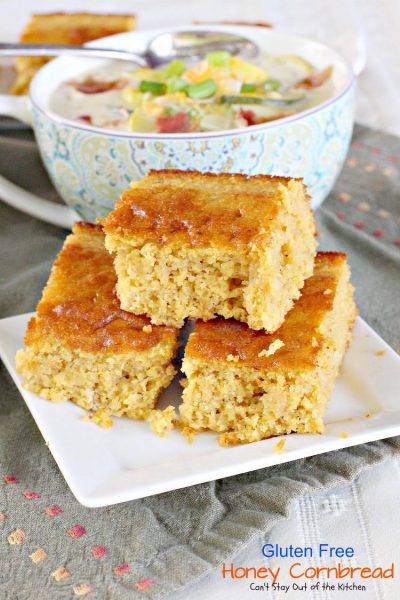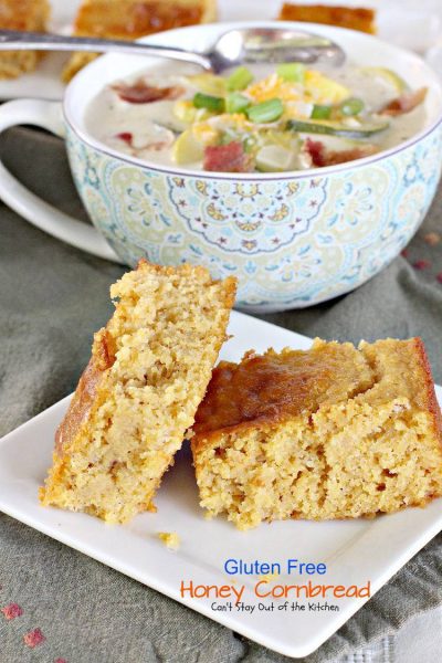 Gluten Free Honey Cornbread is sensational. It’s wonderful with a bowl of hot soup, chili, or beans.