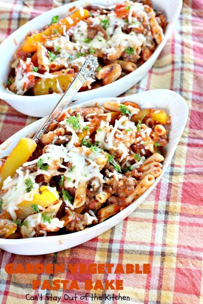 Garden Vegetable Pasta Bake is a great dish to serve when you don’t want to make a lot of side dishes. It’s a one dish meal!