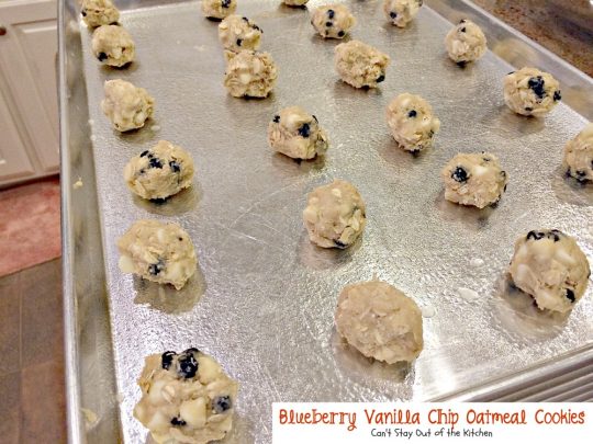Blueberry Vanilla Chip Oatmeal Cookies are great for tailgating parties, potlucks or any family gathering.