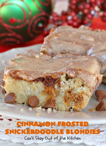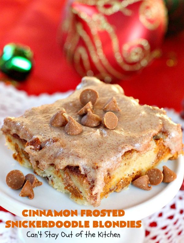 Cinnamon Frosted Snickerdoodle Blondies are amazing.