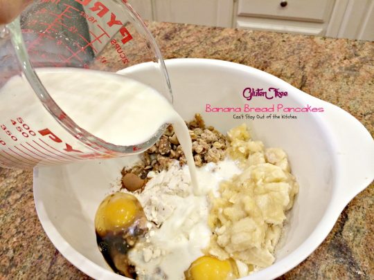 It’s time for a bite of Gluten Free Banana Bread Pancakes!