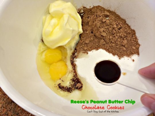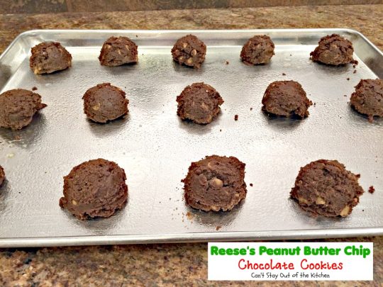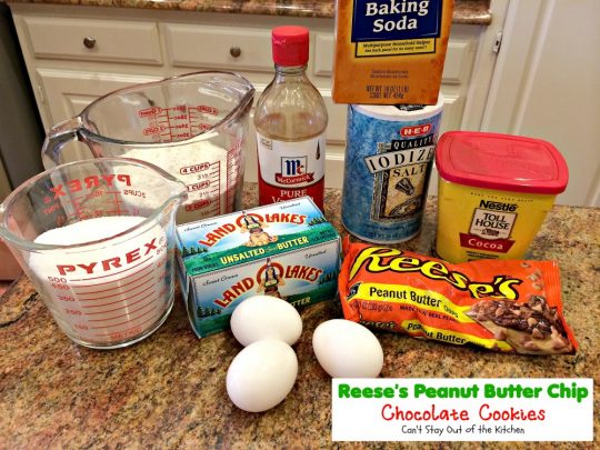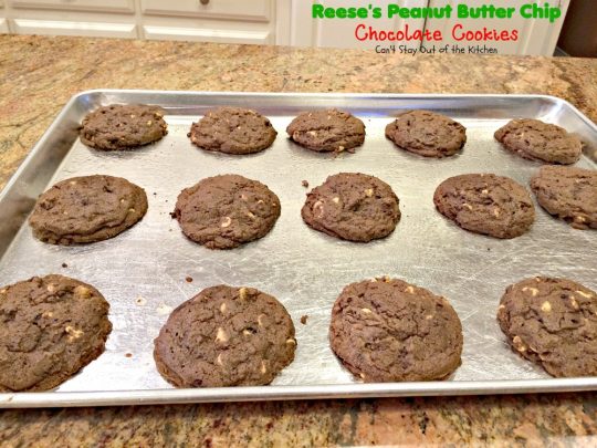 We’ve made Reese’s Peanut Butter Chip Chocolate Cookies for over thirty years now. We made them almost every year for Christmas in the earlier days. The only thing I would suggest when making them is not to cook them on a dark, black pan. Those were the kind of cookie sheets available back in the 70s and 80s and the cookies would scorch on the bottoms even if they’d only been baking 8 minutes! The reflection never worked well.