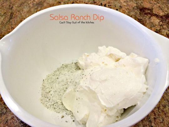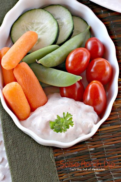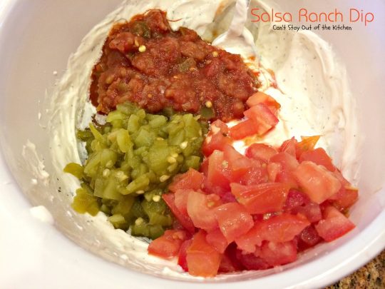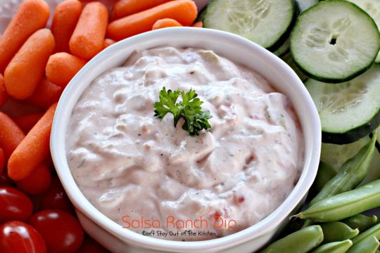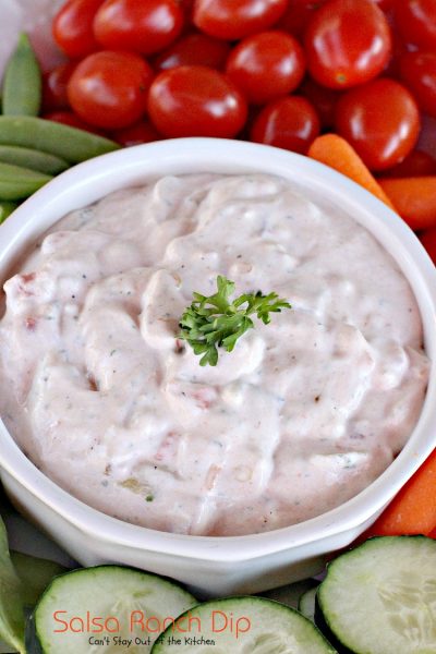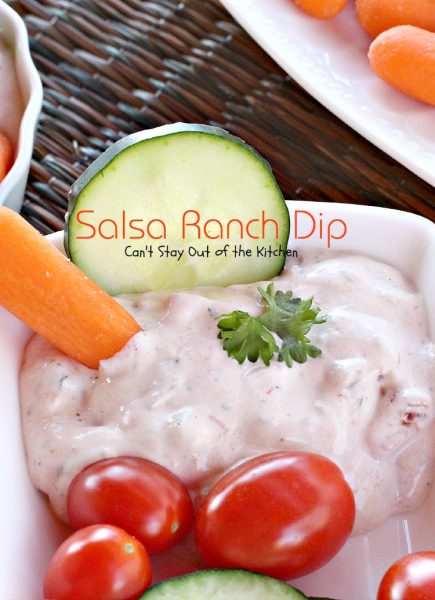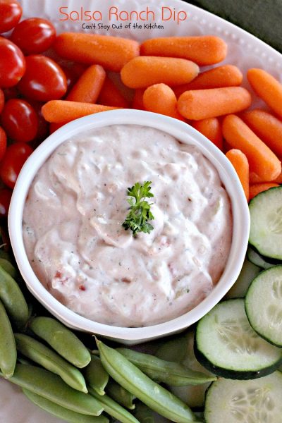 If you need a quick and easy appetizer to whip up for company, Salsa Ranch Dip sure fits the bill.