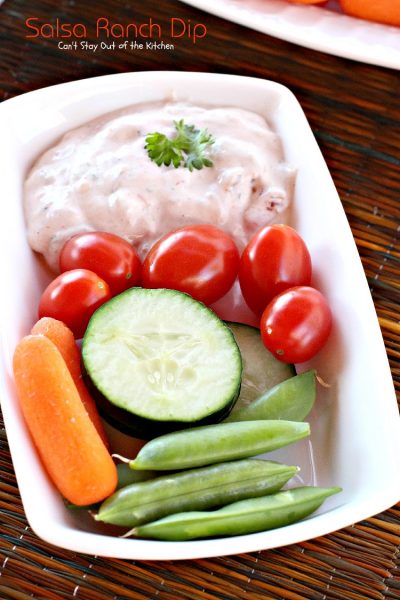 I served Salsa Ranch Dip with veggie dippers as well as with tortilla chips.