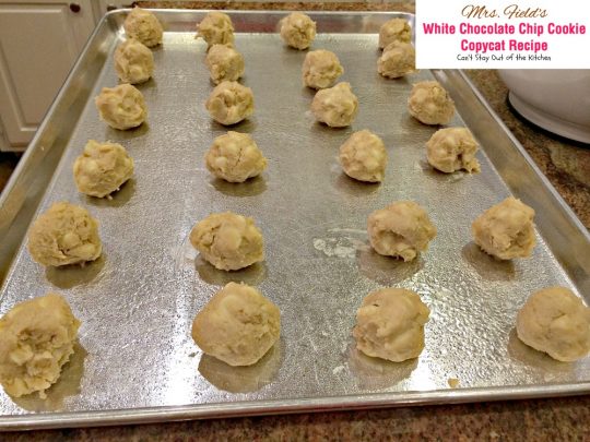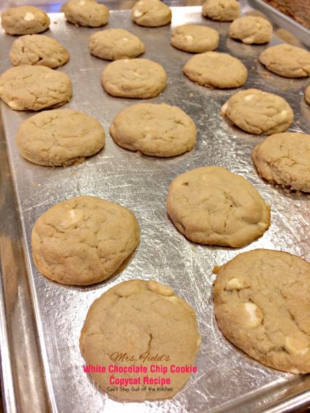 I bake Mrs. Field’s White Chocolate Chip Cookie Copycat Recipe until the cookies are done, not underdone, like the original recipe calls for. But if you want a softer cookie, then bake these cookies between 9-11 minutes.