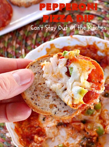 Pepperoni Pizza Dip is the perfect appetizer for tailgating parties or the Super Bowl. Guys love this stuff!
