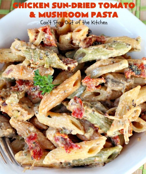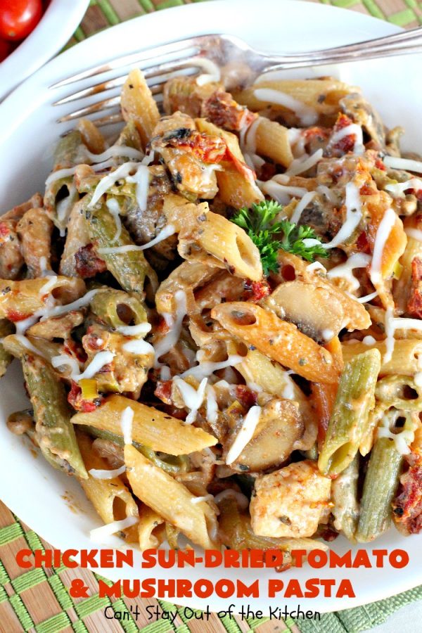 Chicken Sun-Dried Tomato and Mushroom Pasta is so savory and delicious, you’ll be wanting seconds!