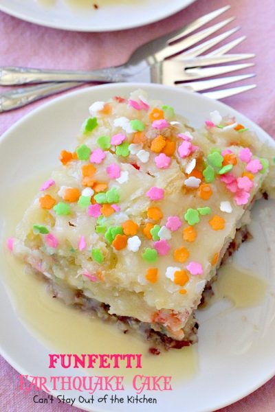 Funfetti Earthquake Cake is rich, decadent and such a delectable cake. You’ve got to make this!