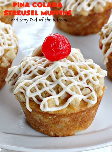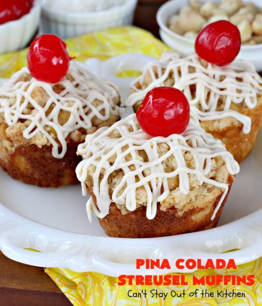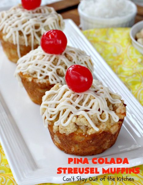 Pina Colada Streusel Muffins include coconut extract providing a wonderful pina colada flavor.