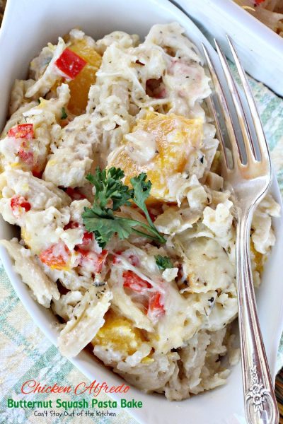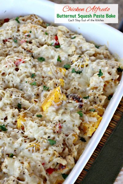 CHICKEN ALFREDO BUTTERNUT SQUASH PASTA BAKE