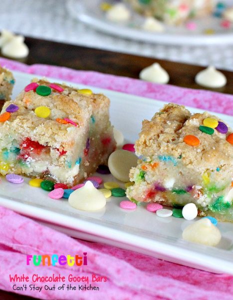 Funfetti White Chocolate Gooey Bars | Can't Stay Out of the Kitchen