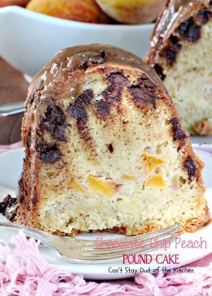 Chocolate Chip Peach Pound Cake is a winner. Everyone loves this cake!
