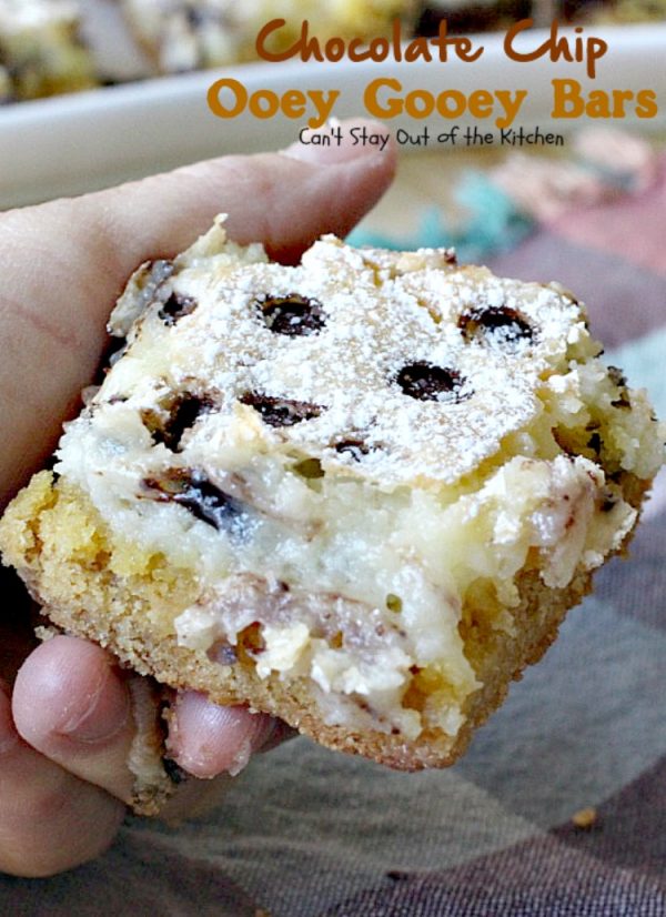 Chocolate Chip Ooey Gooey Bars should be on your tailgating party menus this fall and winter.