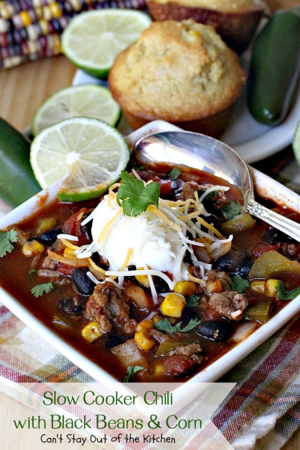 I served Slow Cooker Chili with Black Beans and Corn with Sweet Corn Muffins. Both were terrific.