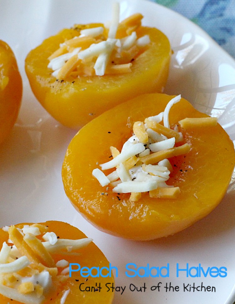 Peach Salad Halves | Can't Stay Out of the Kitchen | this lovely #fruit #salad has only 4 ingredients & is so quick and easy. Great for #holiday menus, too.