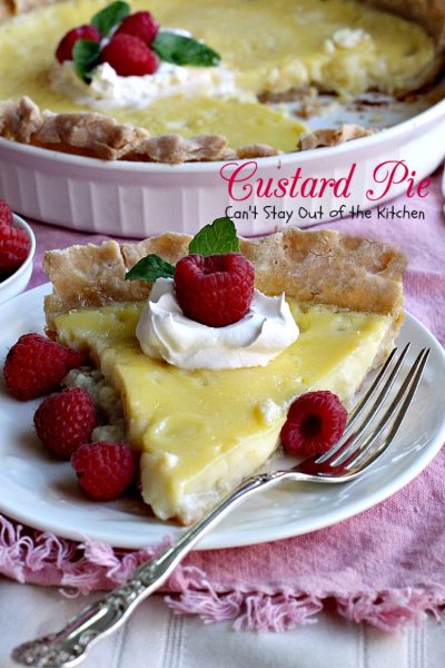 Custard Pie is a great dessert for any dinner menu.