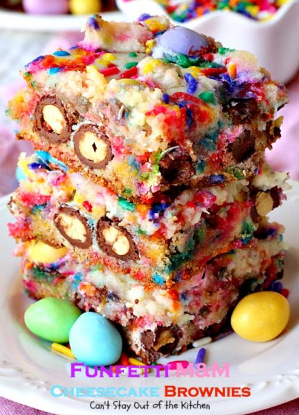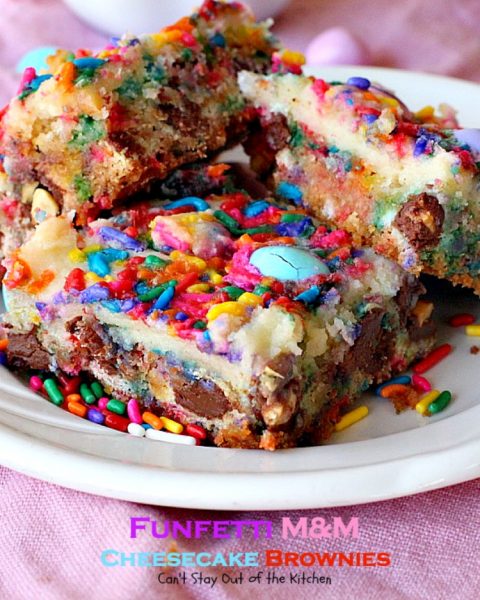 Funfetti M&M Cheesecake Brownies are a great way to use up Easter candy too!