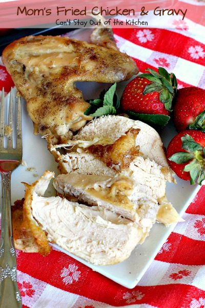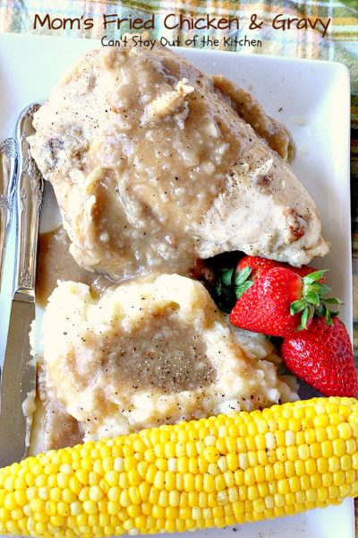 Our family always loved Mom’s Fried Chicken and Gravy when we were growing up. We still do. Now that Mom has passed I think I’m the only one who still makes Fried Chicken this way on occasion. I love Mom’s great recipes and remember with fondness watching her cook over the stove to make our favorite dishes.
