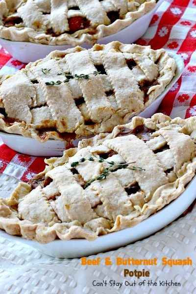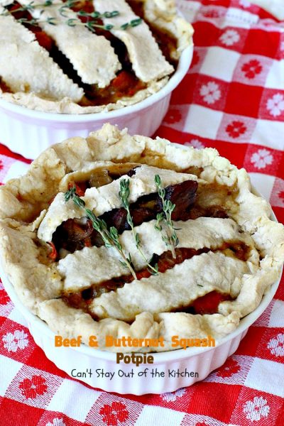 Beef and Butternut Squash Potpie is so succulent and delicious, you will find it on your dinner menu often. Especially in the winter months when you want hot, comfort food like this.