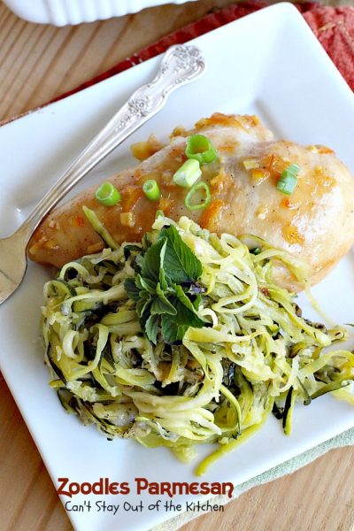 Zoodles Parmesan is a great accompaniment to Glazed Orange Marmalade Chicken.