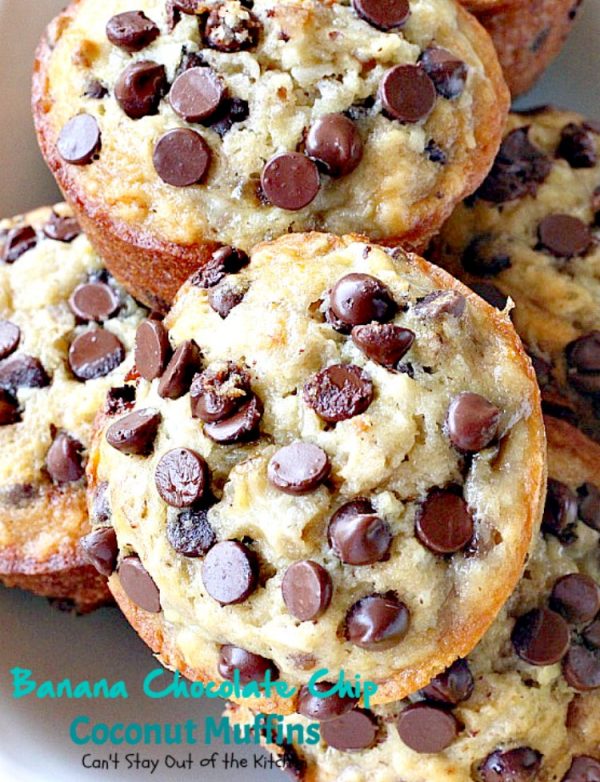 Banana Chocolate Chip Coconut Muffins are great muffins for a holiday or anniversary breakfast.