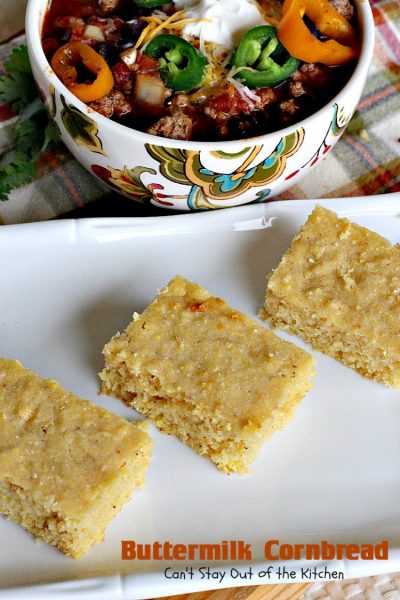 Buttermilk Cornbread is delightful. Better make two batches! Add some chili while you’re at it!