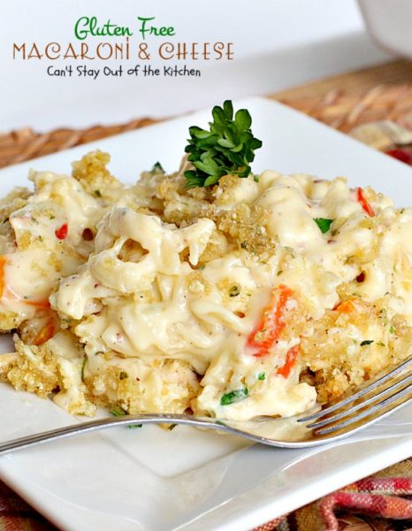 You won’t get the same level of creaminess, nor will the dish come out right. While this Meatless Monday entree is gluten free, it is NOT low-calorie. It is one of those casseroles you make when you want to splurge on yourself with comfort food extraordinaire! Gluten Free Macaroni and Cheese is so filling and satisfying you won’t even realize you’re eating gluten free if you didn’t know it.