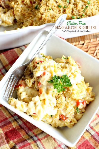 Gluten Free Macaroni and Cheese is terrific. You will probably want multiple helpings!