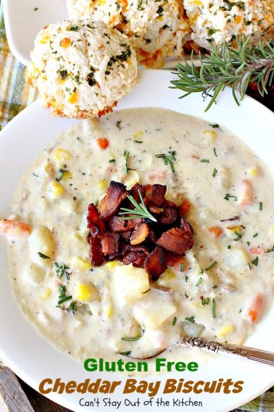 Gluten Free Cheddar Bay Biscuits were wonderful served with a bowl of Turkey Corn Chowder.