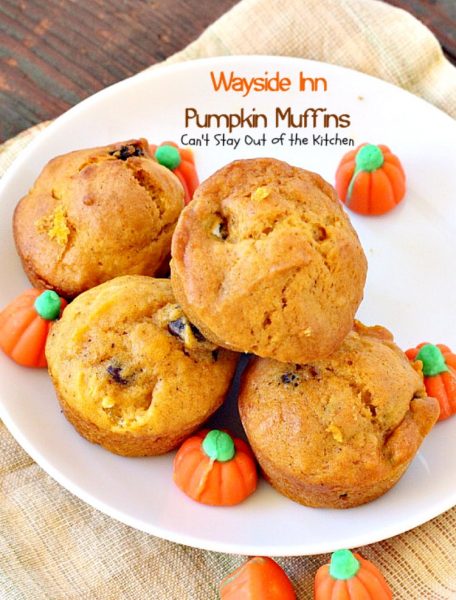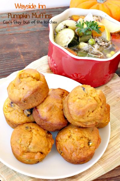 Wayside Inn Pumpkin Muffins are delectable. You’ll be hard pressed not to pop two or three of these into your mouth at the same time!