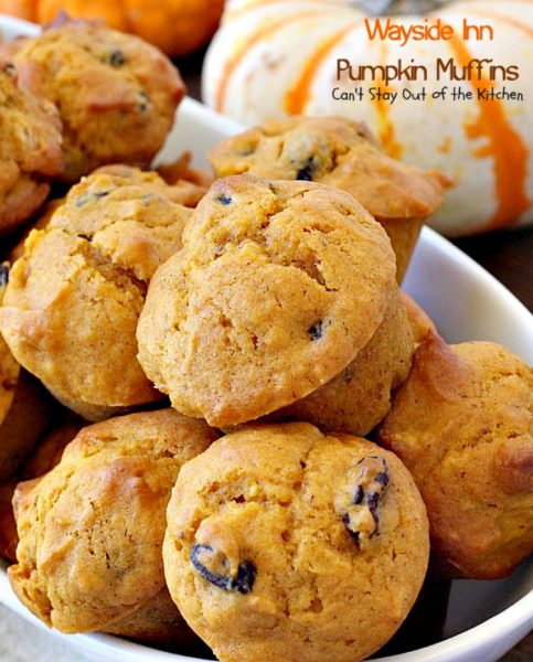 If you want a spectacular muffin to make for Christmas or any other holiday breakfast, I can’t recommend Wayside Inn Pumpkin Muffins enough. They’re to die for. 🙂 And, I’ll bet you’ll have a really hard time just eating one!