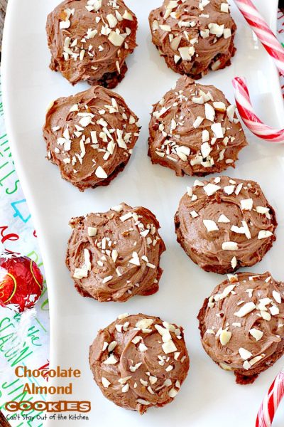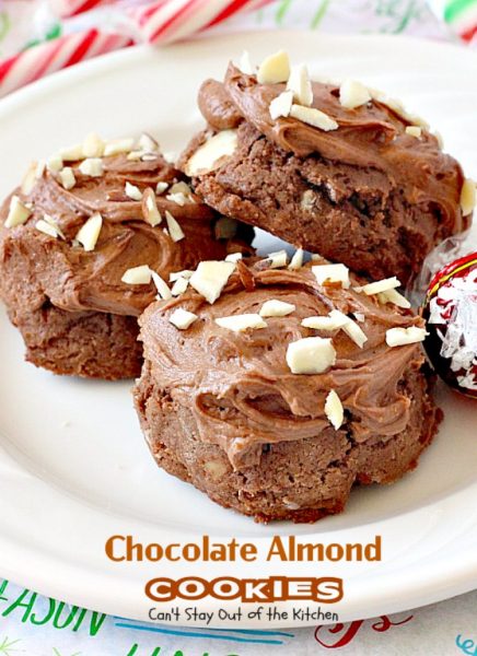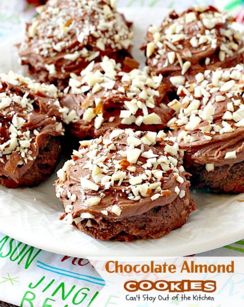 Oh, boy, Chocolate Almond Cookies are the BEST! I love the flavors of chocolate and almonds together. Especially when it includes a rich, fudgy, decadent chocolate icing! I started with one of my favorite recipes from my Mom, but decided to improvise by adding almond extract and almonds in the cookie dough and in the icing. Wow, did these ever turn out terrific.