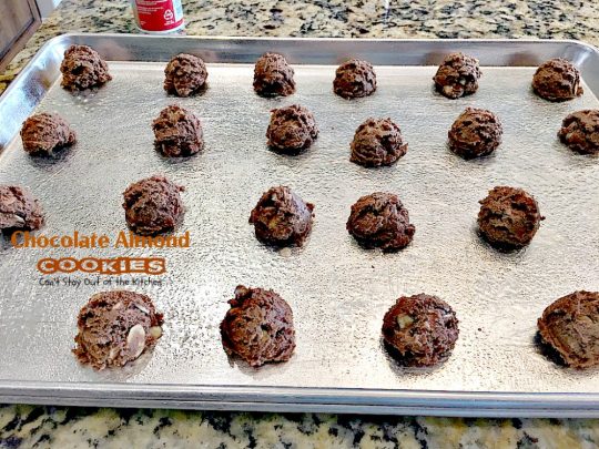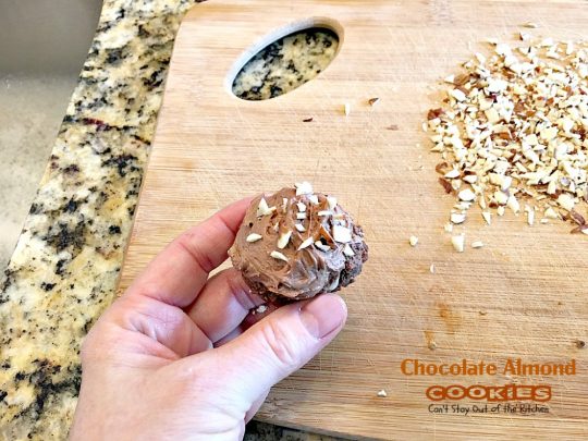 If you’re looking for a fantastic cookie for tailgating parties, holidays, potlucks or just general consumption (YES!!!), then I highly recommend Chocolate Almond Cookies. While I added sliced almonds to the cookies, you can dice the nuts up smaller like I did for the top of the cookie, if you prefer. Prepare yourself for a chocolate almond explosion to die for! …. I think it’s time to make another batch…. 🙂